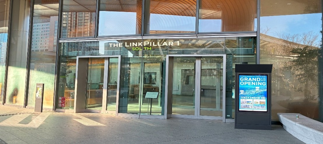 高輪ゲートウェイ駅「南改札」から屋根に沿って直進し、THE LINKPILLAR 1(SOUTH)のビル入口から入り、左方向へお進みください。