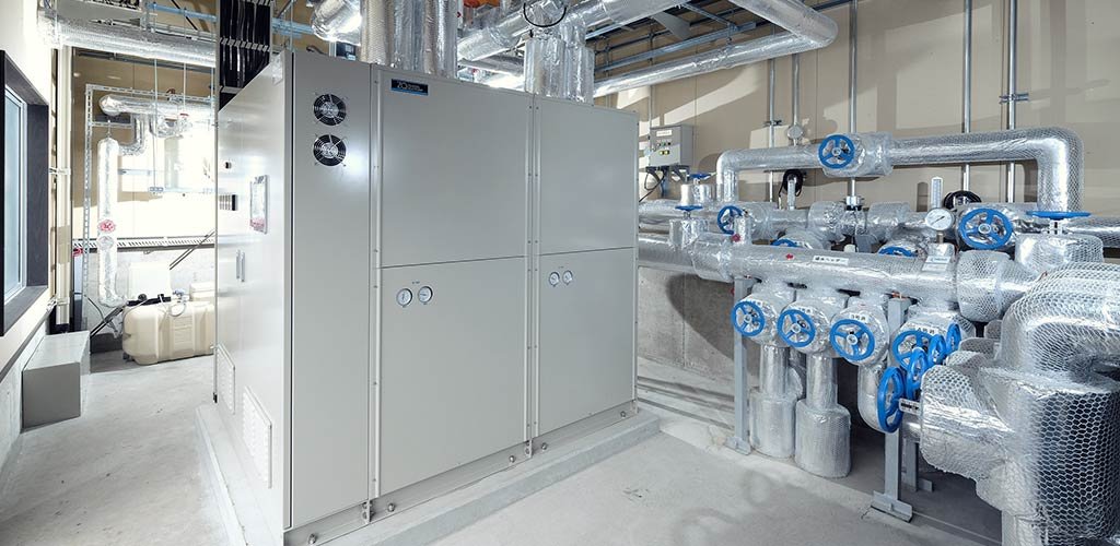 山谷さんは言います。「自然の水ですから、地下水にはいろいろな成分が含まれます。それらが、ヒートポンプの細かい配管に付着し効率低下を起こさないように洗浄したり、ヒートポンプの前に分解清掃が容易な熱交換器を設置したりしていました。もし、地下水と冷媒を直接熱交換できるヒートポンプがあれば、システムの効率が格段に上がるはずと考え続けていました」