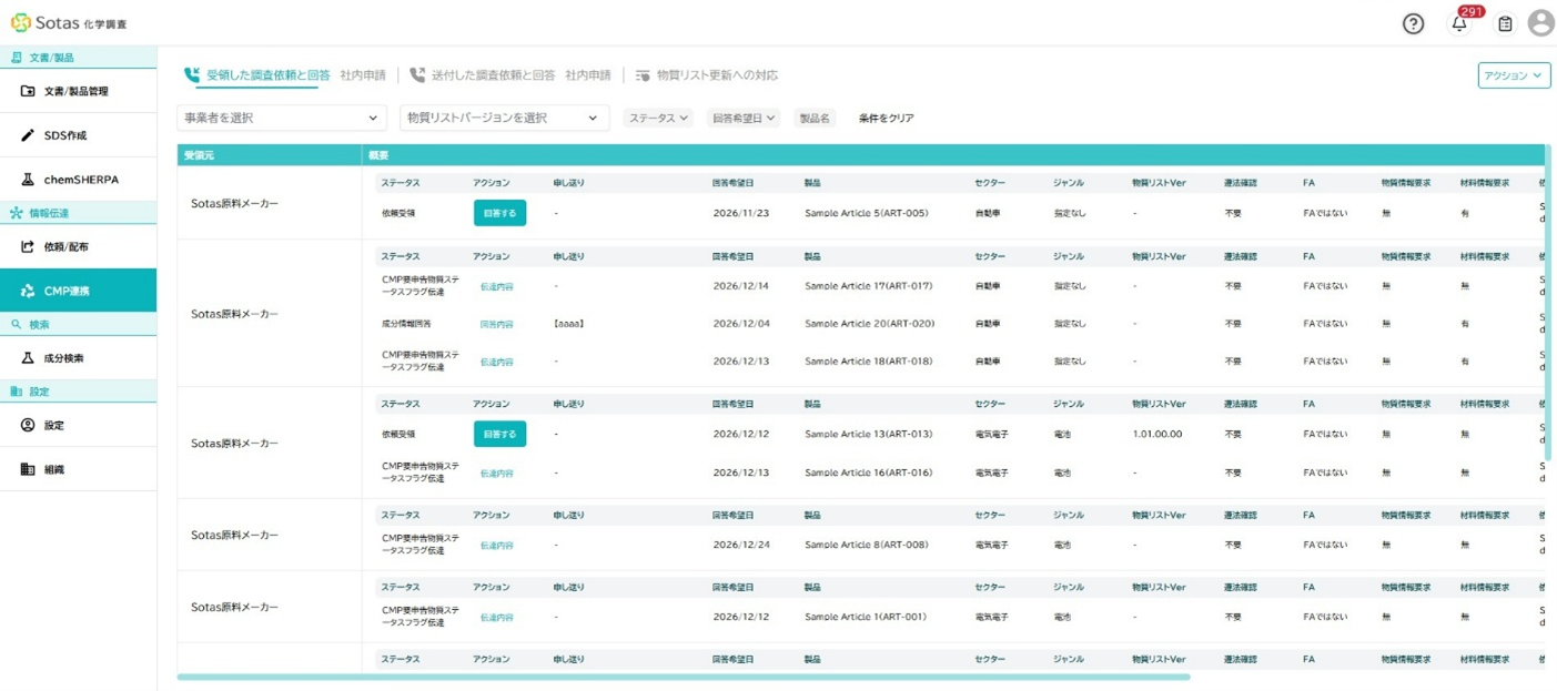 Sotas株式会社は、化学産業向けに工程管理・化学調査・データベースなどのSaaS(Software as a Service:インターネット経由で必要な時にソフトウェアを利用できるサービス)を提供し、サプライチェーン全体の効率化と業務デジタル化を支援する企業です。「ウラノス・エコシステムの実現のためのデータ連携システム構築・実証事業」(※)において化学産業の現場ニーズを活かしてCMP(製品含有化学物質・資源循環情報プラットフォーム)連携を中心とした化学物質情報トレーサビリティの社会実装を担う企業として重要な役割を果たしています。