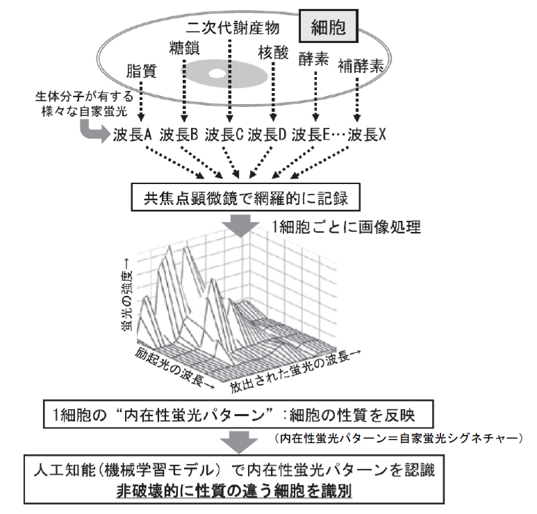 NEDOと(株)ニコンソリューションズ、筑波大学は、植物や微生物を用いた高機能品生産技術の開発(スマートセルプロジェクト)に取り組んでおり、共焦点レーザー顕微鏡システムを用いて微生物の自家蛍光シグネチャーから細胞を傷つけることなく生きたままの生理的状態を高速で定量的に評価し、識別する細胞評価技術「CRIF法」および自動解析ソフトウエアを開発しました。