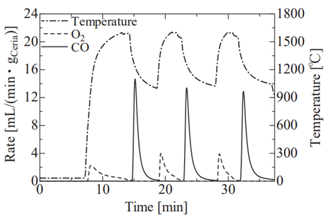 なお、1600℃以上の高温域を含む広範な条件下においてセリアで熱分解したことや、フォームデバイスによるヘルシナイトで熱分解に成功したことは、いずれも世界初となります。本技術により、高効率な炭酸ガス分解のめどが立ったことから、ソーラー燃料(太陽エネルギーを由来とする燃料)製造の低コスト化への応用が期待されます。