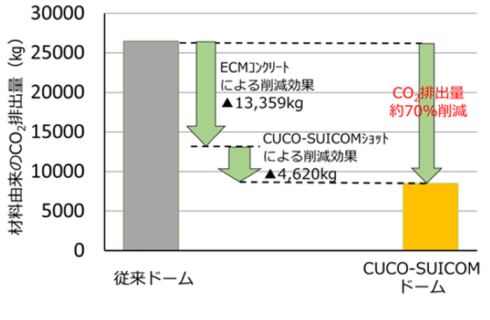 CO2排出量を70%削減した「CUCO-SUICOMドーム」の試験施工を完了