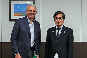 7月11日、NEDO石塚理事長は、駐日イタリア共和国特命全権大使ジャンルイジ・ベネデッティ閣下の表敬訪問を受け、会談を行いました。